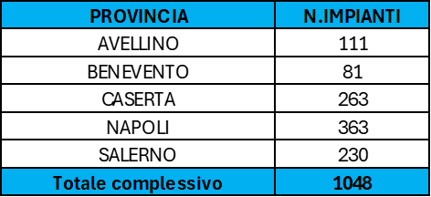 Complessivamente risultano censiti n. 1.048 impianti, così come riportato di seguito.