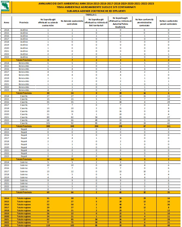 Controlli presso aziende zootecniche per la corretta gestione ambientale dei reflui: nonostante le funzioni ed i compiti amministrativi relativi alle comunicazioni delle attività di spandimento dei reflui, in applicazione dell'art. 5 della Legge Regionale n. 14/2010 "Tutela delle acque dall'inquinamento provocato dai nitrati di origine agricola", siano di competenza dei Comuni, le Aree Territoriali dei Dipartimenti Provinciali dell’ARPAC, su istanza dei Comuni, di altri Enti e soprattutto delle Forze dell'ordine, effettuano sopralluoghi ed ispezioni a supporto. A tal proposito stante la complessità della materia, in applicazione dell'art. 4 della stessa L.R. n.14/2010, è stato predisposto dalla regione Campania di concerto con ARPAC nel 2014 un Piano di Monitoraggio e Controllo per le attività di utilizzazione agronomica degli effluenti di allevamento e delle acque reflue. Nel corso della esecuzione di tale Piano le strutture dipartimentali provinciali hanno effettuato tra il 2015 e il 2018 sopralluoghi su un campione di aziende zootecniche, ubicate in 34 Comuni, suddivisi per Provincia, individuati tra quelli a maggiore densità zootecnica. Sempre nell'ambito di tale Piano, l'Agenzia, tramite le strutture dei dipartimenti provinciali, ha effettuato il monitoraggio delle acque superficiali di due corsi d'acqua in provincia di Caserta ed altrettanti in provincia di Salerno. I campionamenti di acqua eseguiti sono stati funzionali alla valutazione di parametri chimico-fisici, microbiologici e isotopici connessi specificamente all'inquinamento da nitrati. La scelta di tali corsi d'acqua è stata effettuata tra quelli non compresi nel novero dei corsi già monitorati e tra quelli localizzati in aree a forte presenza di attività zootecniche.